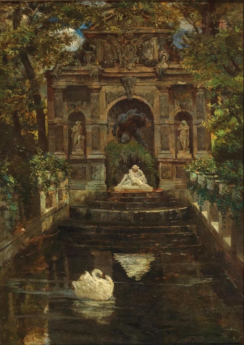 Zsigmond Vajda, “Paris, Jardin du Luxembourg, the Medici Fountain” (Date unknown).